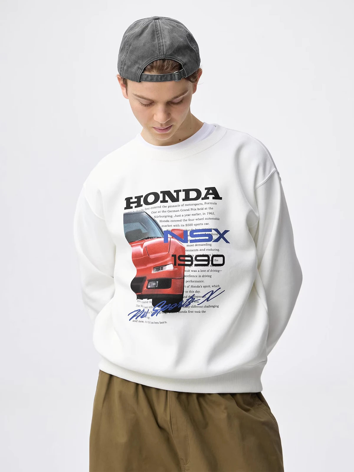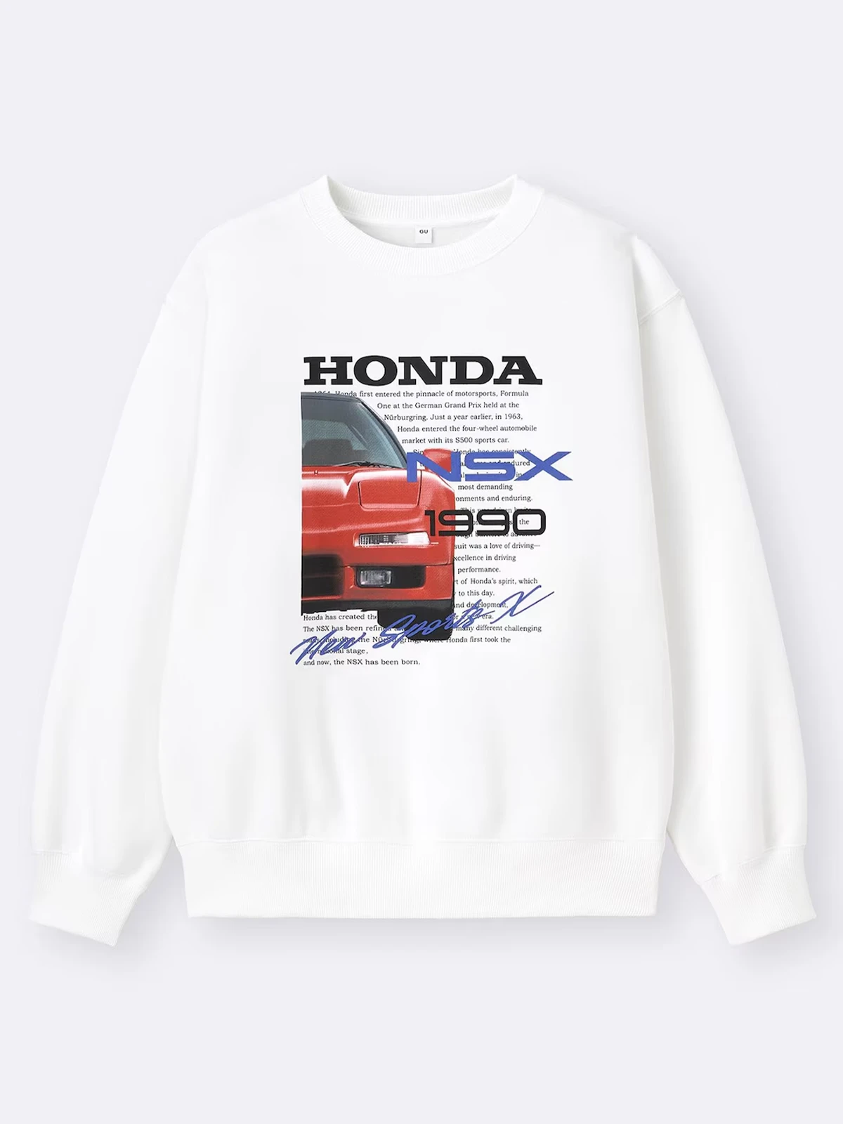 「GU」與「Honda」於 2026 年推出全新聯名系列,本季以 SPEED HERITAGE 為主題,將經典名車號稱東瀛法拉利的 NSX、Honda H 標誌 以及 HRC 賽車部門徽章融入設計,打造具運動風格的大學 T/衛衣系列。