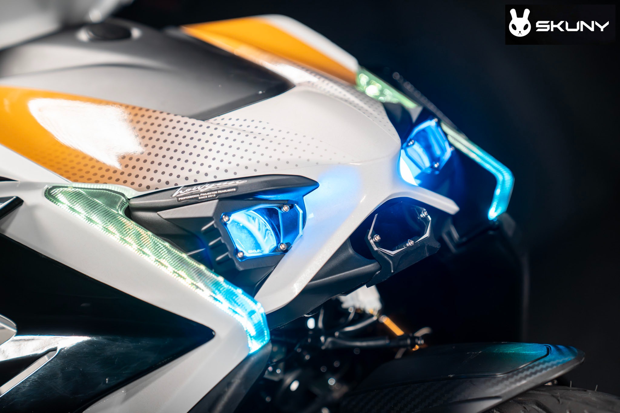 在台灣的二輪改裝領域中,SKUNY 始終是一個充滿個性且難以被忽視的存在。那個標誌性的螢光色「龐克兔」Logo,代表的不僅僅是零件,更是一種拒絕平庸的騎士態度。隨著 YAMAHA 勁戰七代(Cygnus X / XR)的問世,這台具備強烈層次感的車款,成為了 SKUNY 發揮原創設計的最佳畫布。這次我們不談大拆大改,而是要透過三件「防禦系」精品,讓你的愛車在保護昂貴零件的同時,也能瞬間切換至硬派的戰鬥模式。