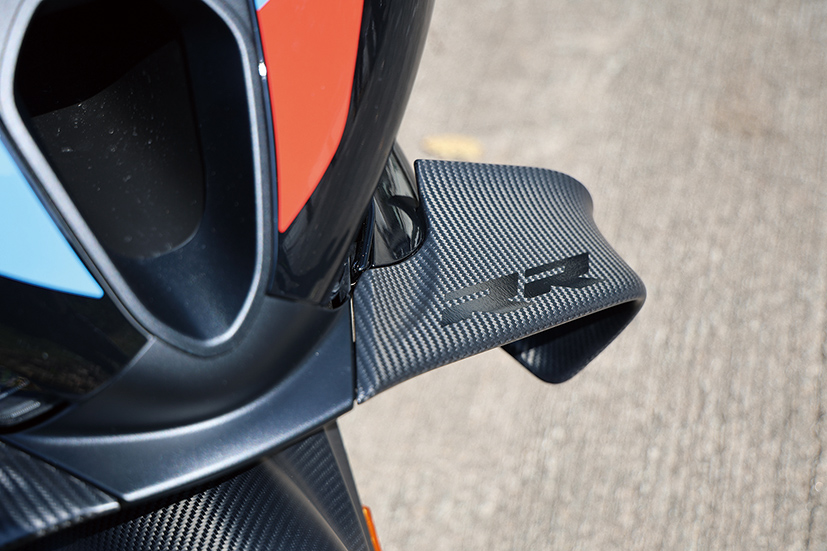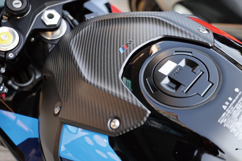 對於追求性能極致的超跑來說,最佳性能始終取決於材質,M Competition專屬碳纖維部件,除了一對碳纖維輪框外,還包括碳纖維前後輪泥擋、單座尾冚、鏈蓋、前進風口護罩(可選)、油缸護罩(可選)等。前煞車的導風管設計,以及源自賽道經驗的前煞車導風管,能有效為卡鉗降溫約10度,確保在惡劣的比賽環境下制動效能依然穩定。