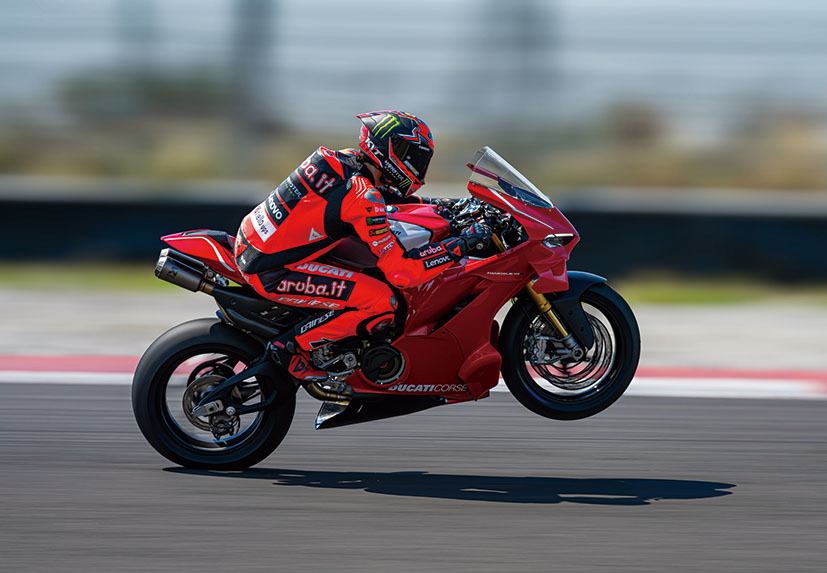 原廠極速達318.4km/h,賽道化改裝後更可突破極限,達到330.6km/h。引擎內部升級包括全新設計嘅進氣系統同排氣凸輪軸、減重5.1%嘅輕量化活塞、高慣性曲軸,以及重新定位嘅節氣門噴油嘴。優化後令動力輸出更加線性飽滿,油門反應得心應手,完美沿用咗Ducati廠隊嘅冠軍調校邏輯。