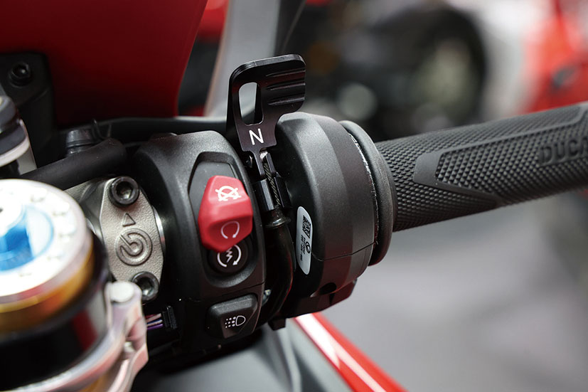 不過,既然空波移咗去1波底,又衍生出另一個新問題:車手會唔會喺極限拖波嗰陣,唔小心由1波再向下踩錯入空波?為咗防止呢種情況發生,Ducati工程師開發咗DNL空波鎖。呢套係結合咗物理同電子嘅保險機制,平時會將空波鎖死,令波箱最低波段停喺1波。落場駕駛嗰陣,DNL處於鎖定狀態,無論車手點踩,波棍踩到1波就落唔到去,確保架車維持喺戰鬥狀態。
