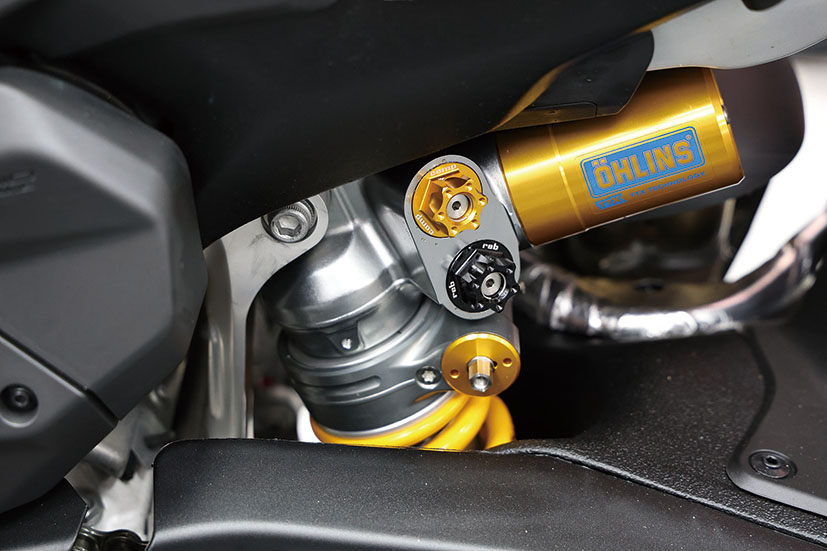 後懸掛系統︰Ohlins TTX36單筒油壓彈簧,電子避震,行程130mm