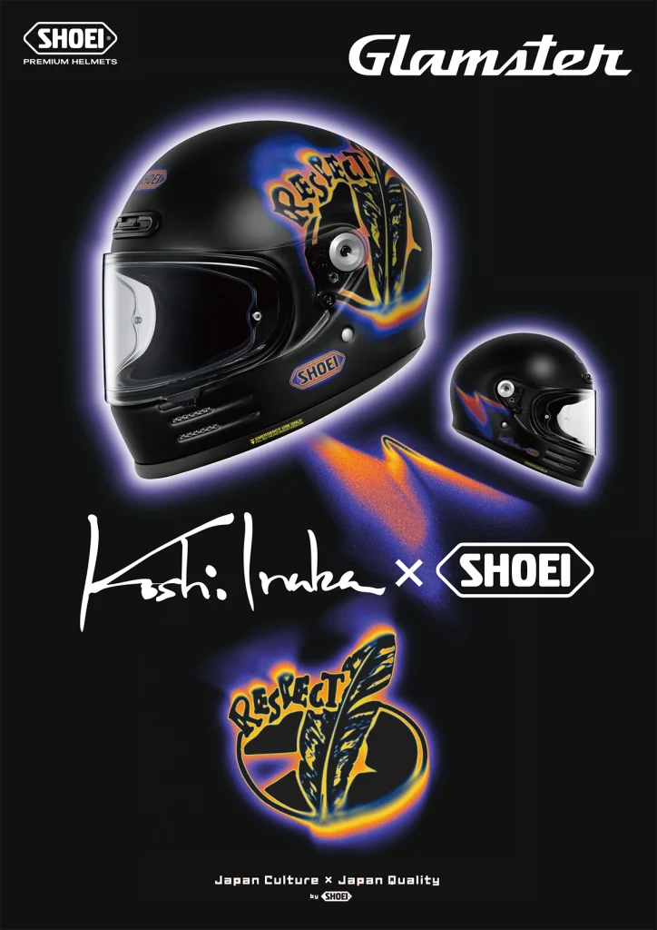 SHOEI 產品線將加入由稻葉浩志(Koshi Inaba)首度親自監修設計的聯名安全帽款。此系列將其個人指標性圖騰及樂曲名稱轉化為標誌,融入帽體彩繪中,讓騎士能帶著稻葉氏的熱情馳騁。本次聯名分別以結合古典風格與現代功能的復古全罩款 「Glamster」,以及能為多樣穿搭增添騎乘樂趣的開放式復古款 「J・O+」 兩款型號展開。