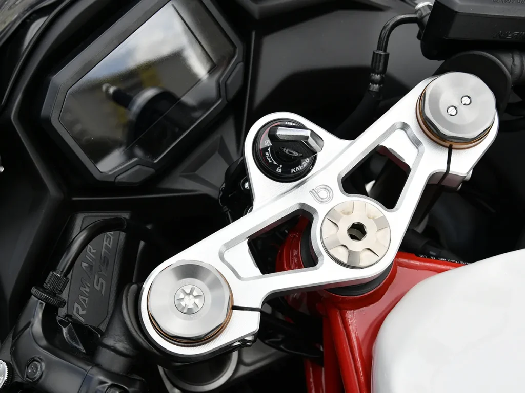 此外,前煞車系統直接標配廣受好評的 Brembo Stylema 輻射對四一體式卡鉗,大幅提升制動力與操控細膩度,也更符合 BIMOTA 一貫的高端路線。