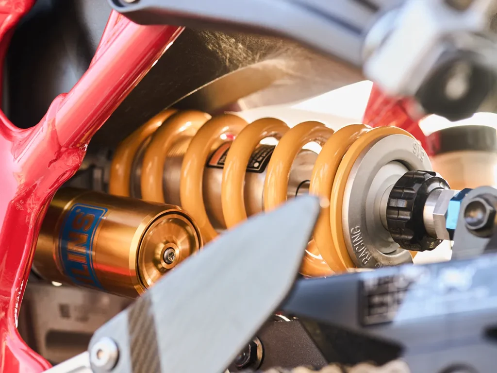 - ES 版後避震器配備全可調的 Öhlins STX46,進一步淬鍊其極致的操控性能。