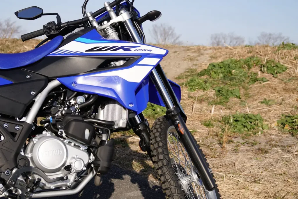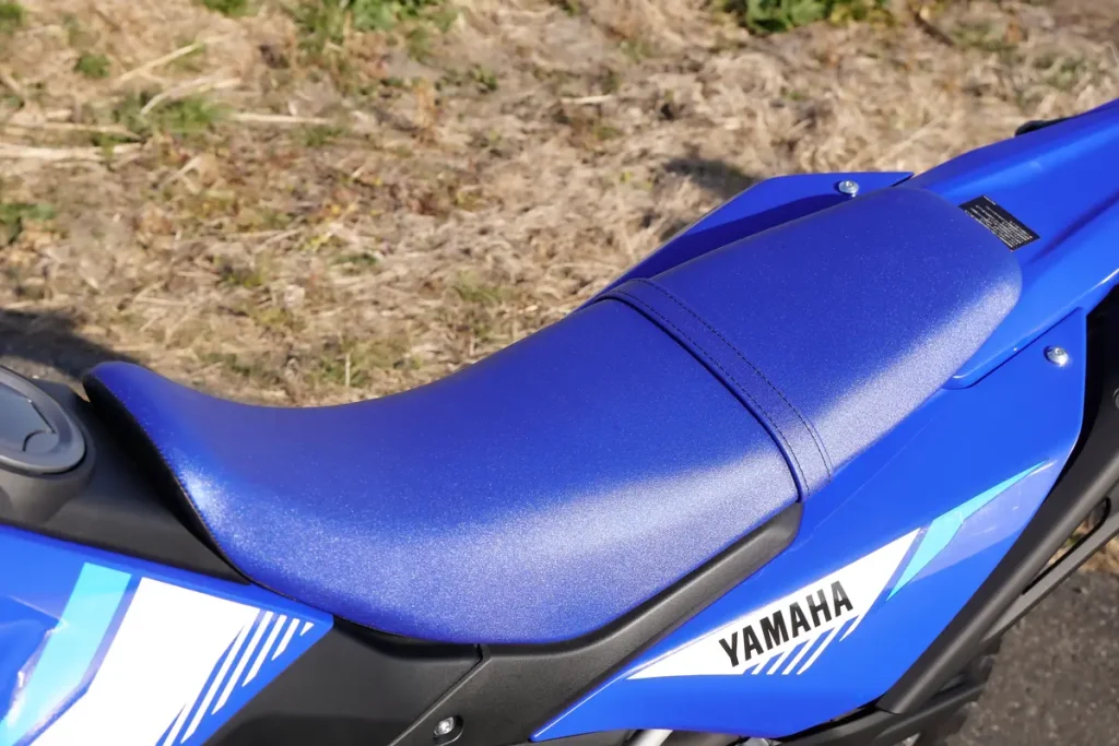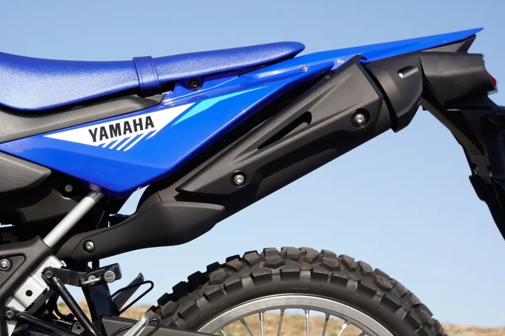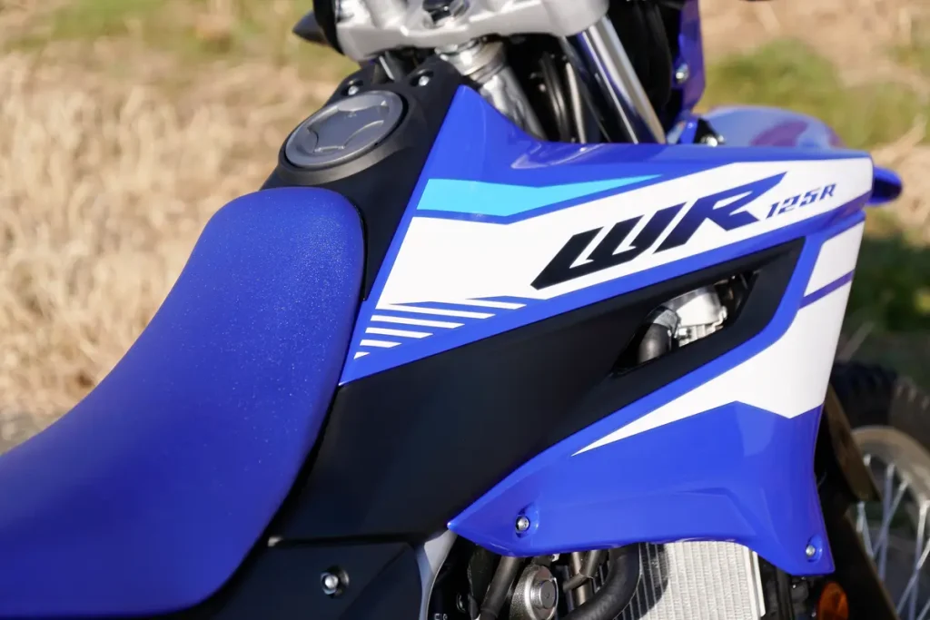 WR125R 在設計上刻意採用纖細座墊與緊湊車身線條,外殼亦採用平滑化處理,減少越野時與騎士裝備之間的干涉,讓身體移動更加自由,有助於提升越野操控性。