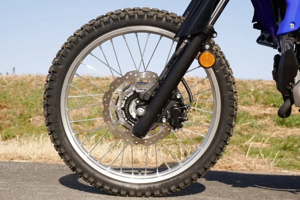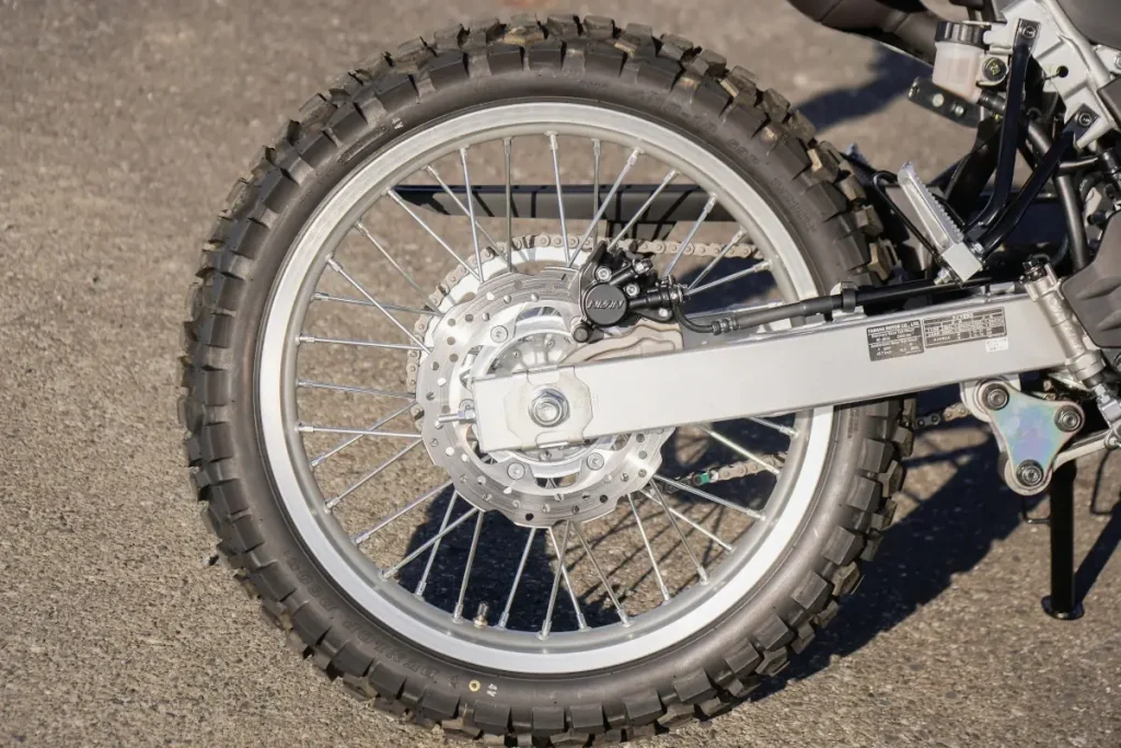 前懸吊(避震)採用內管徑 φ41mm 的正立式前叉,作動行程為 215mm。後懸吊則為多連桿設計,作動行程為 187mm。輪框採用前 21 吋、後 18 吋的配置,並確保了 265mm 的最低離地高。煞車(制動)系統為前 φ267mm 碟盤、後 φ220mm 碟盤,僅前輪配備 ABS。整體的底盤設定讓人能充分享受越野騎乘的樂趣。