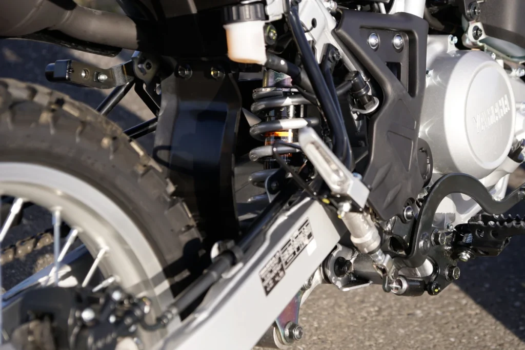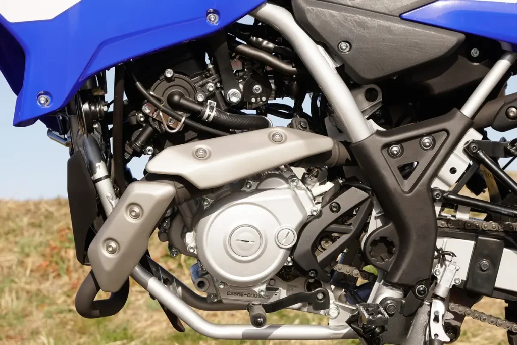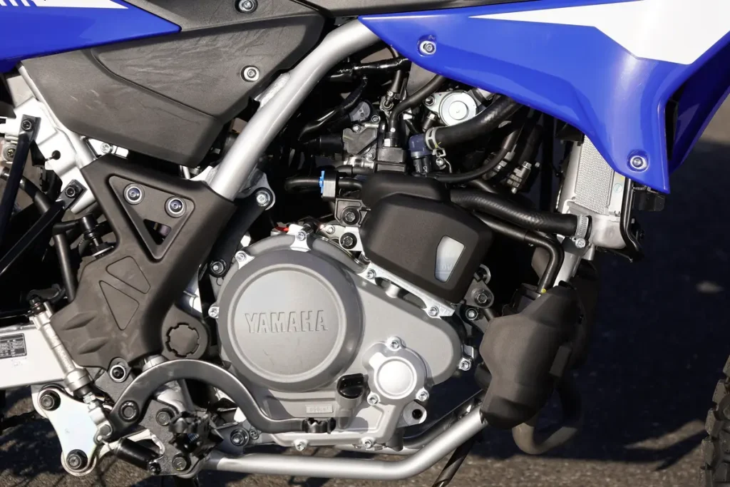 引擎基本與搭載「VVA(可變汽門揚程機構)」的道路跑車「YZF-R125」相同,但將最大扭力從 1.2kgf・m/8000rpm 調整為更偏向低轉速的 1.1kgf・m/6500rpm,實現了最適合頻繁使用中低轉速域的越野動力特性。此外,比起「WR155R」進一步擴大的空濾容量,也對提升越野時的操控性有所貢獻。引擎的安裝角度也經過調整,實現了車體的緊湊化。