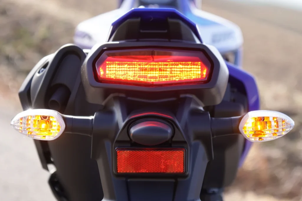 - 與「Tenere 700」同款造型的 LED 尾燈。方向燈前後皆為傳統鹵素燈泡,辨識度良好。並配備雙黃警示燈(Hazard)功能。
