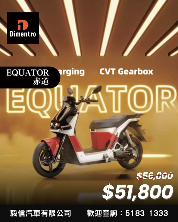 踏入2026新的一年,Dimentro電動電單車品牌款進行新春大優惠益用家,同時在油價不斷飆升之下,入購者可說是雙重得益,有興趣換新電動電單車的朋友不妨親到新蒲崗(地址:新蒲崗三祝街10號地下B舖(即億升汽車))或火炭(地址:元朗教育路昌盛徑18號元通樓12號地舖)的陳列室睇睇。可能有些用家仍然對於電動電單車的充電問題仍然有所顧慮,但得到最新的消息,在「領展」旗下的多個商場已開設了適合為DP-PRO及EQUATOR兩款電動電單車補給的充電位,且遍佈港、九、新界及大嶼山,大大增強便利性,用家們日後出遊時再無需擔心為愛駒充電的問題。