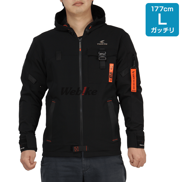 第一眼看到它的感覺是”原來摩托車服裝已經進化到這樣了!”雖然我偏好傳統款式,但這款RSJ335 QUICK DRY 連帽防摔外套有著橘色拉鍊、胸袋上的搭扣,MA-1樣式的標籤、背面的條形碼等,讓我覺得這款外套相當適合在騎乘近年來流行的SCRAMBLER或露營戶外旅行等情況下穿著。