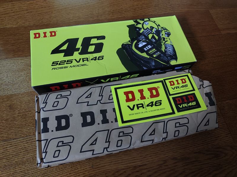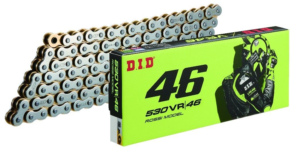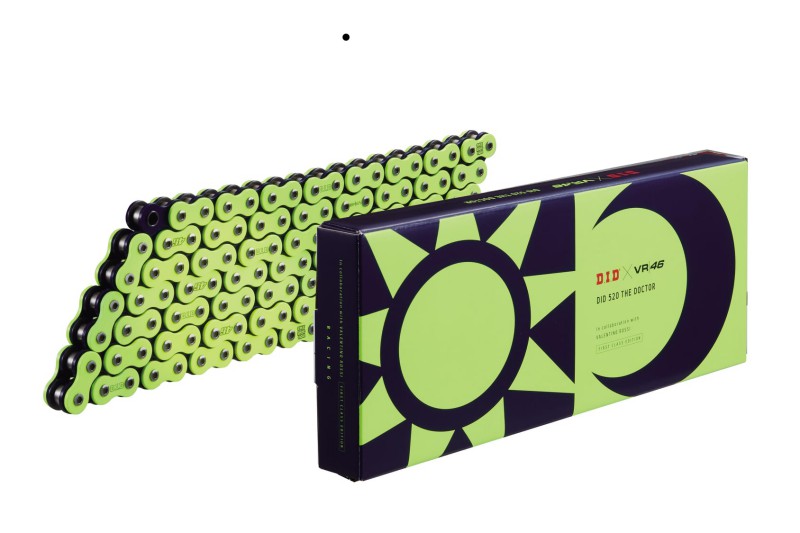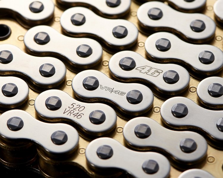 VR46系列鏈條的顏色與標準版DID鏈條相似,但由內側金色鏈結+外側銀色鏈片組合而成,外觀上相當豪華,且與520 THE DOCTOR相比,它的顏色更溫和、銀色和金色在DID鏈條中很受歡迎,更可以搭配眾多車款!