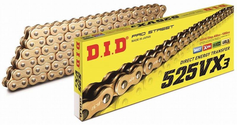 根據DID提供的資料,VR46系列鏈條的性能級規格與VX系列相同。VX系列是DID專為1000cc以上車款推出的鏈條,具有輕量化且高強度的優點!是一款從街車到長途旅行車款都能適用的鏈條產品。