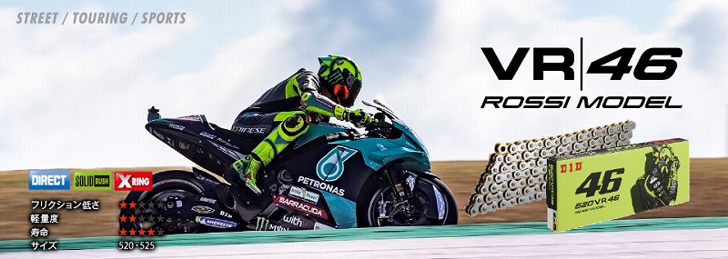 因此,這次編輯部想向各位推薦,同樣是由DID與被任命為官方形象大使的Valentino Rossi合作推出的 520/525 VR46系列鏈條!